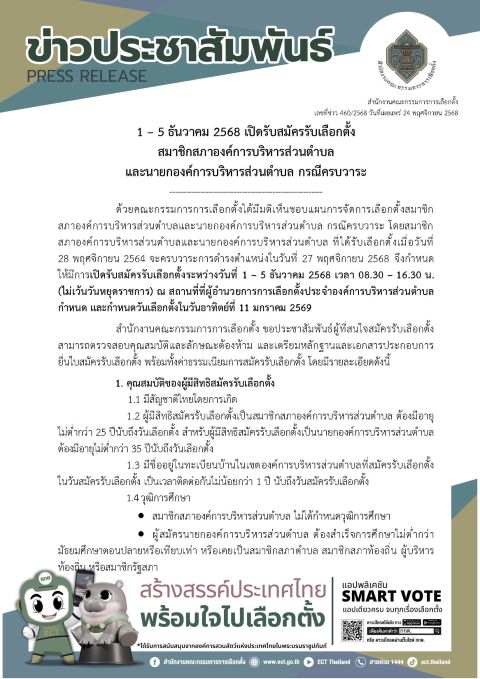 ประชาสัมพันธ์การรับสมัครรับเลือกตั้ง สมาชิกสภาองค์การบริหารส่วนตำบลและนายกองค์การบริหารส่วนตำบล