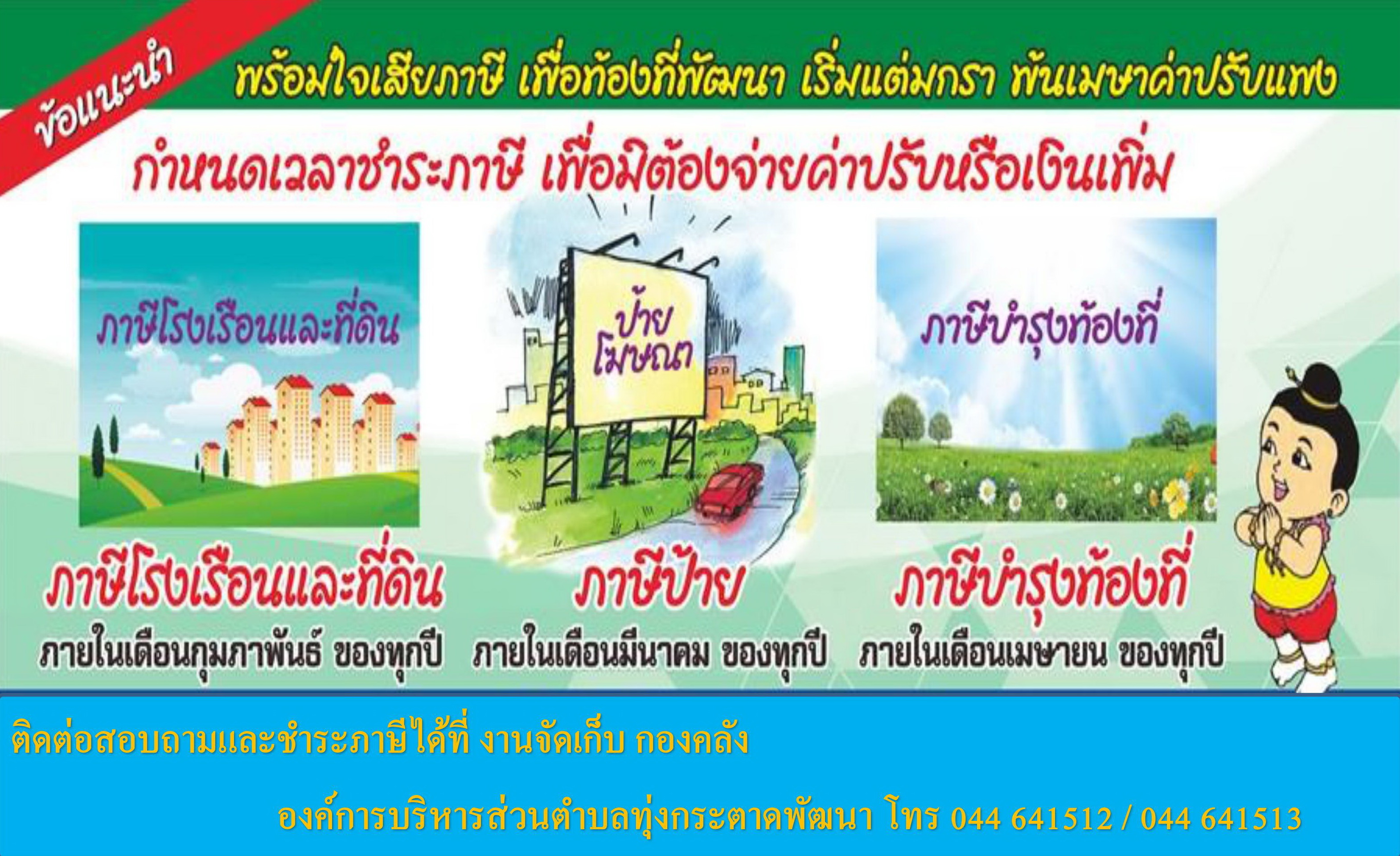 เรื่อง ให้เจ้าของทรัพย์สินที่มีโรงเรือนและที่ดิน และป้ายภายในเขตองค์การบริหารส่วนตำบลทุ่งกระตาดพัฒนา ยื่นแบบแจ้งรายการและชำระภาษี ประจำปี 2562